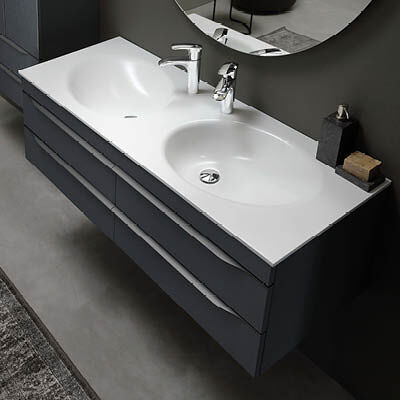 573660 – MALAYA OUM 140 DARK GRAY , ormarić s duplim Kerrock umivaonikom (tamno siva)
