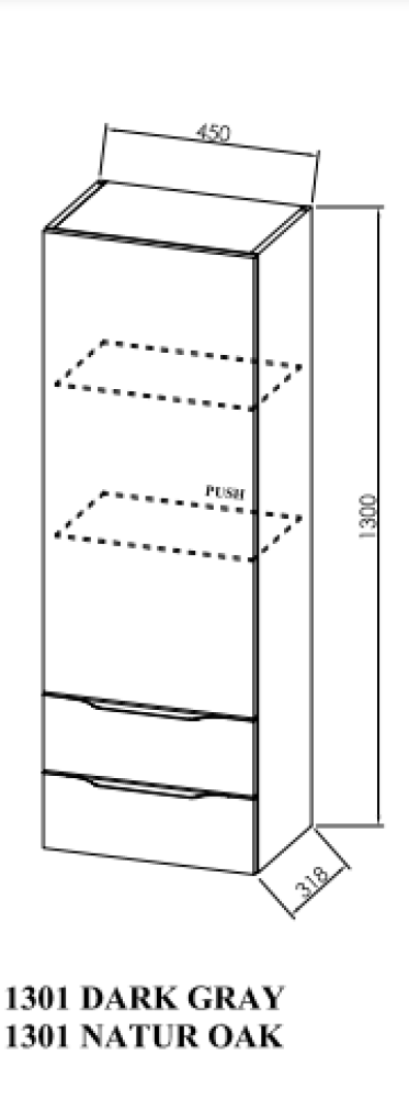 - 573720 – MALAYA M 1301 DARK GRAY, ormarić sa vratima i fiokama (tamno siva)