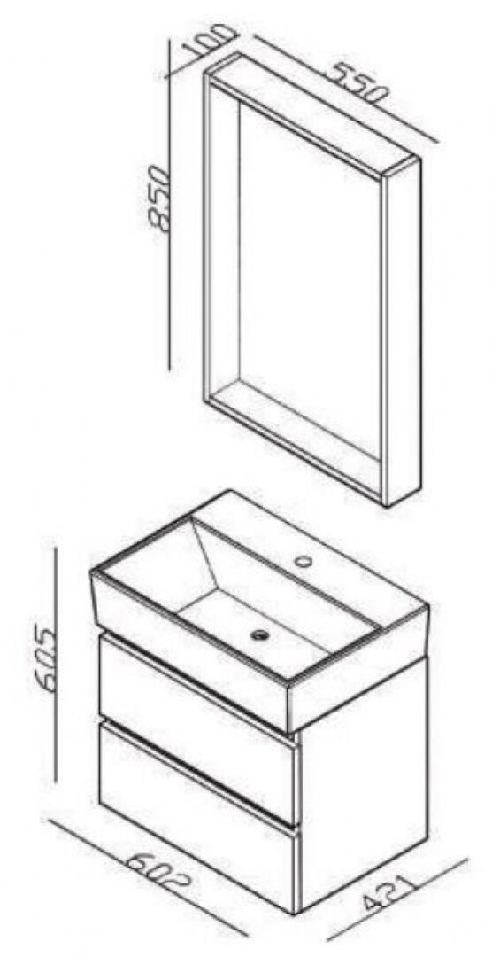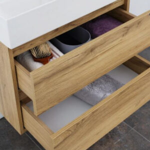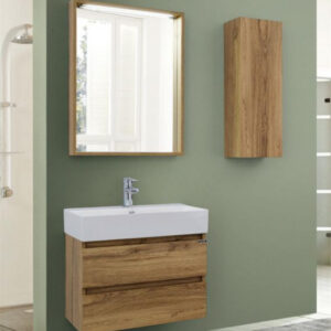 Ormarić dolazi u kompletu sa kvalitetnim umivaonikom, otpornim na vlagu, ogrebotine i svakodnevnu upotrebu. Unutrašnji prostor omogućava uredno skladištenje kozmetike, sredstava za higijenu i ostalih kupatilskih potrepština. Materijali su prilagođeni vlažnim uslovima, što garantuje dug vek trajanja i lako održavanje.